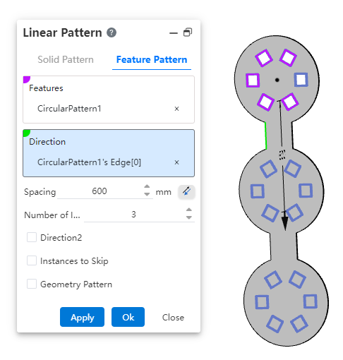 The array/mirror command now supports selecting array/mirror features as source features, enhancing modeling flexibility and efficiency.