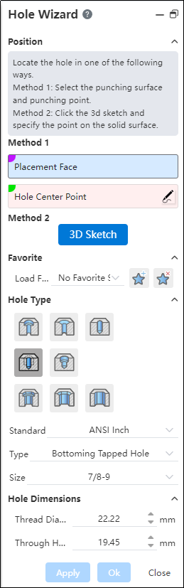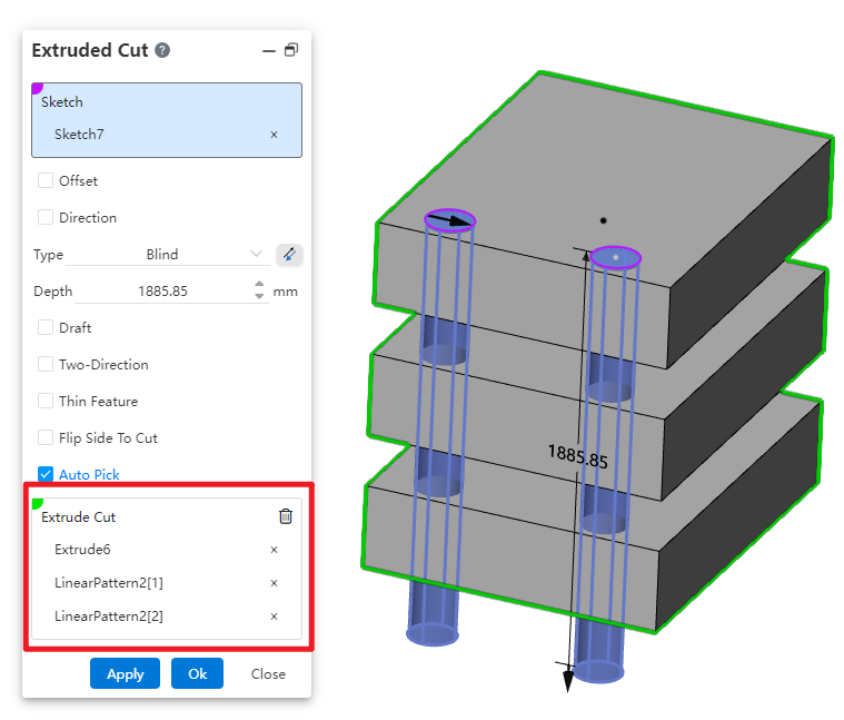 The termination condition now supports forming up to the next face. When this option is selected, there's no need to manually calculate the hole depth—the hole will automatically terminate at the next face, significantly improving design and modeling efficiency.