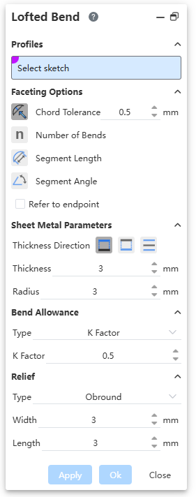 Developed Bend Options: Controls the effect of the developed bend, influencing the number of bends.