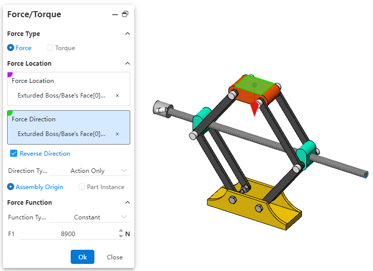 Direction Type: Choose whether the load is a single-direction force or an interaction force based on your requirements. (External loads are typically single-direction forces; springs are interaction forces.)