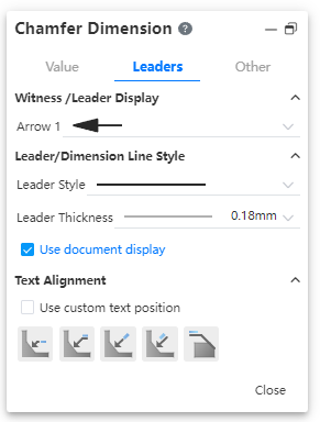 Switch to the "Lead" TAB and select the chamfer size limit, Lead size line display style, and custom text position:
