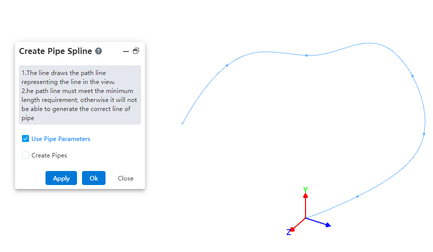 Note: The operation methods for the "Pipe Parameters" and "Create Pipe" options are consistent with those in the "Draw Path" command.
