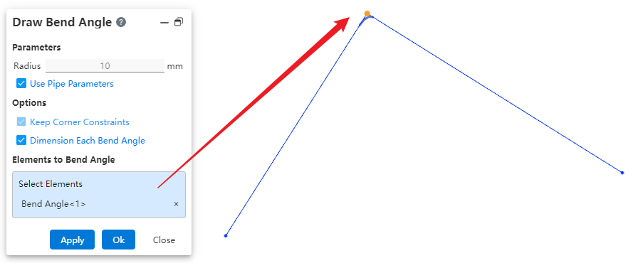 Elements for Bend Angle Creation: Select a vertex or a path line.