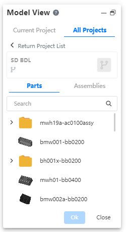 When you need to switch the view that generates other models, click the "Re-select" button to display the recently used model, continue to click the "Browse" button to select the model in the current project or another project.