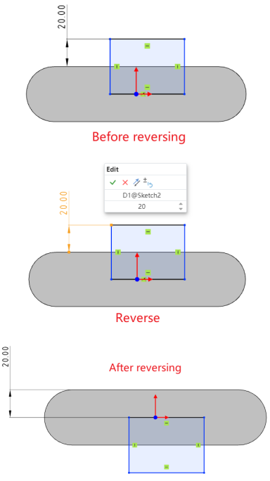 2) Enter a negative value for the dimension, or click the "Reverse" button in the edit window.