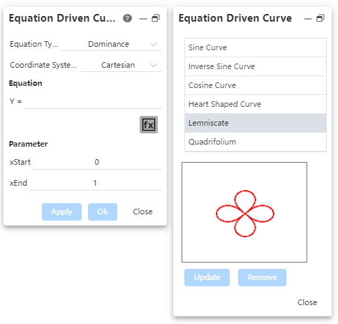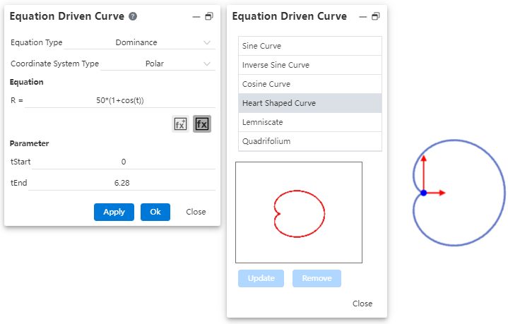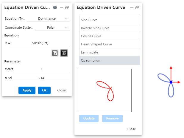 Double-click an equation in the equation list to fill it into the left Equation dialog box and support direct participation in modeling. Can be previewed in the viewport: