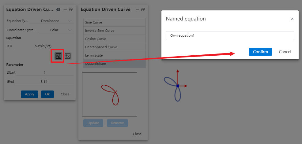 1.Click equation curve command, pop-up dialog box.