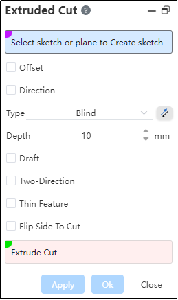 Pick a sketch profile to extrude the cut.