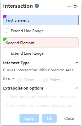 Extend Linear Intersection to Surfaces: When the intersecting elements do not have an actual intersection region, enabling this option will virtually extend the elements to generate an intersection. This only applies to lines.
