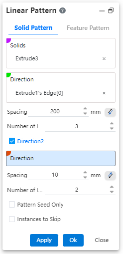 - Direction 2:When you need to also array in the second direction, check the direction 2 option at this time, and add the options in the interface as follows: