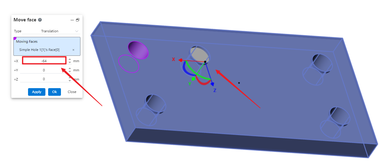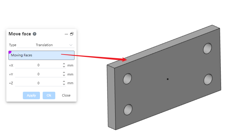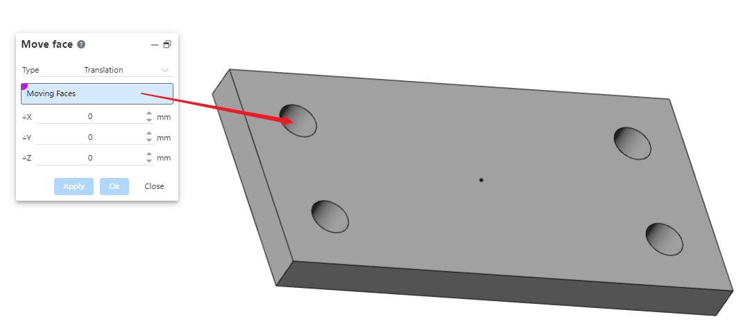 Click this icon, and in the pop-up dialog box, select the face(s) to be moved.