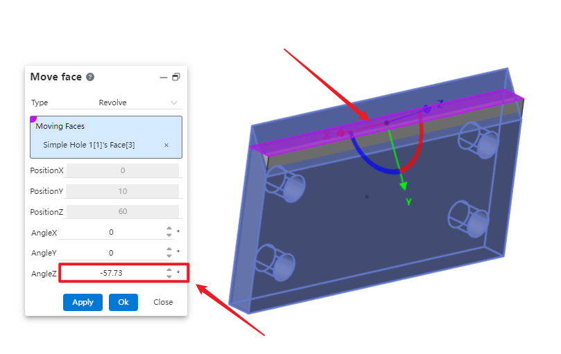 Click this icon, and in the pop-up dialog box, select the face(s) to be rotated.