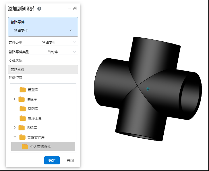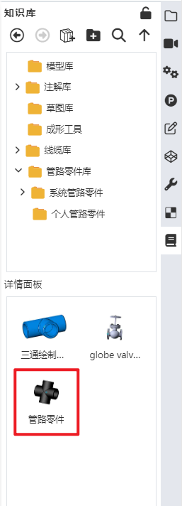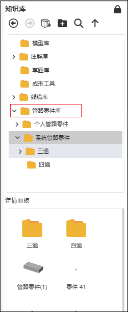 知识库中的管路零件库文件夹可以用来储存管路零件。