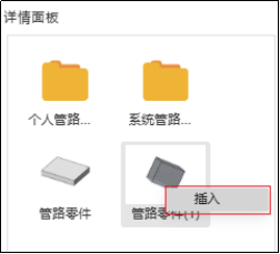 - 右键点击管路零件,点击“插入”,从而可以将零件拖拽到装配界面。