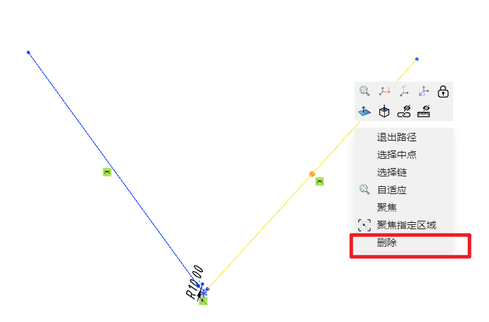 注: 若仅需要删除路径中的某段线条,右键该线条,选择删除即可。也可以单击线条,按Delete键删除。
