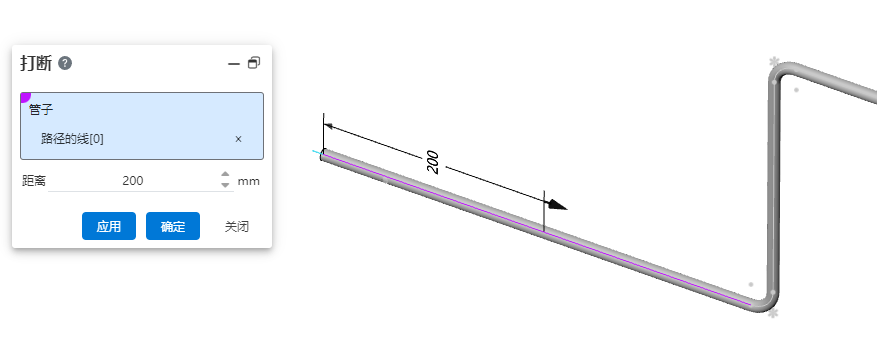 - 点击确定,管子实例会按照修改的参数立即更新。