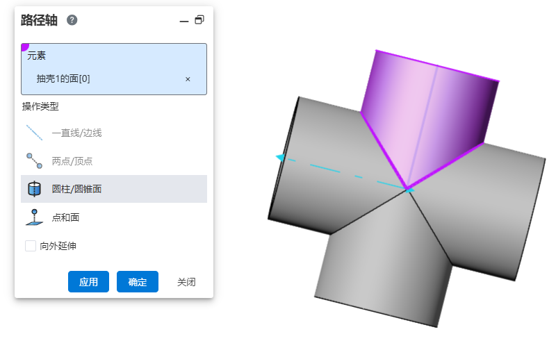 圆柱/圆锥面:一个圆柱面/圆弧面,创建与轴线重合的路径轴。【只可单选一个圆柱/圆锥面】