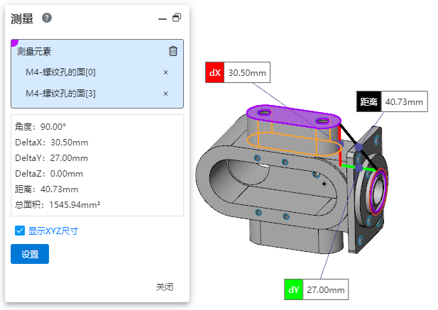 显示XYZ尺寸:勾选后,在视口中显示元素之间的dX、dY、dZ的测量值。