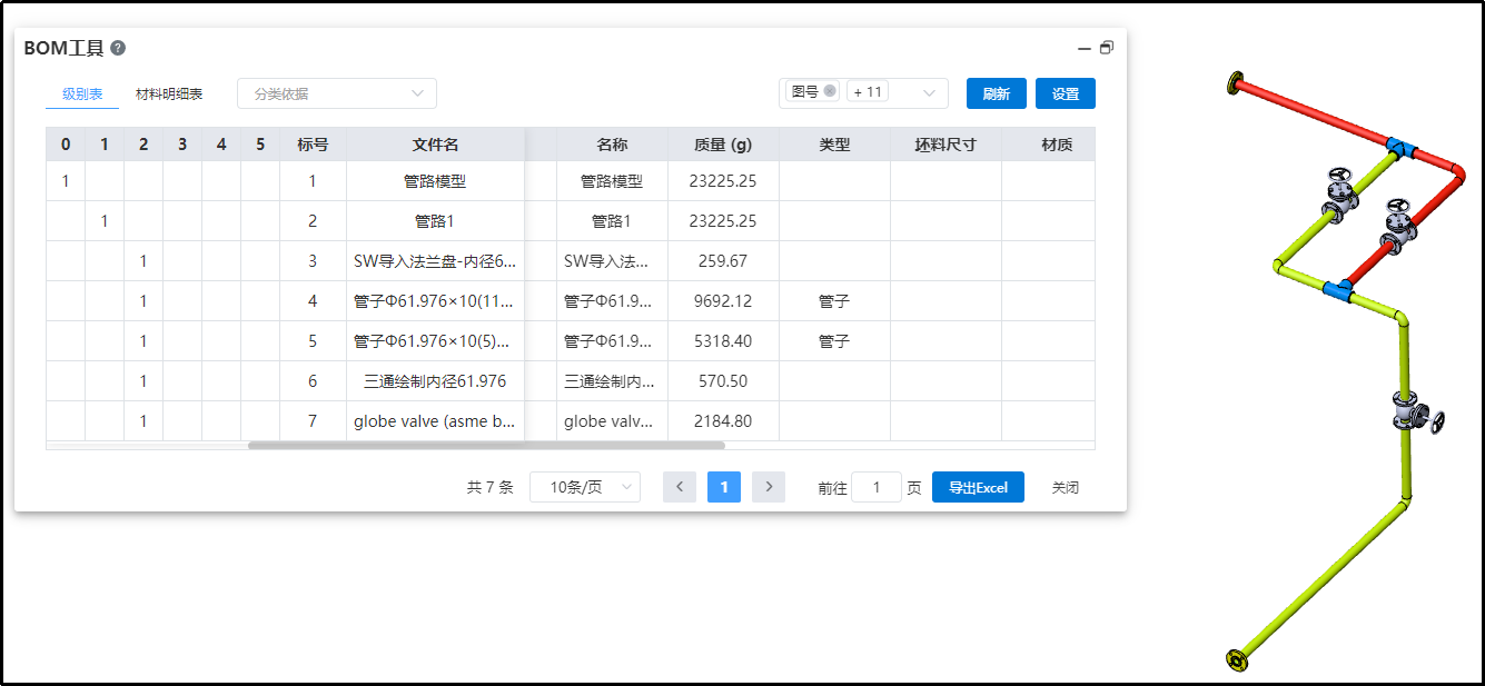 - 管路BOM:现有的【BOM工具】支持统计管路BOM信息。