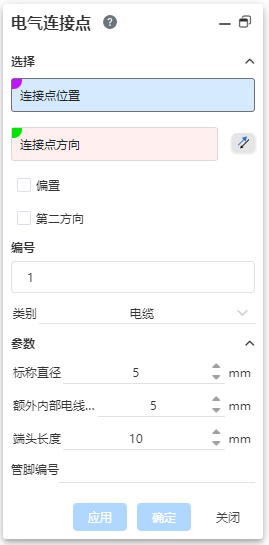 电气线路类型: 设置此连接点默认对应何种电气线路类型。