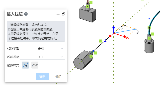 使用【插入线缆】命令,可以自由绘制路径并生成线缆。