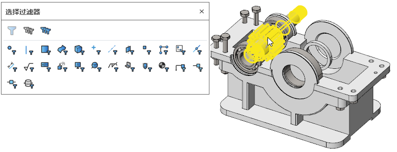 - 浮动框:编辑特征、抑制、回滚、显示/隐藏、圆角、倒角、自适应。