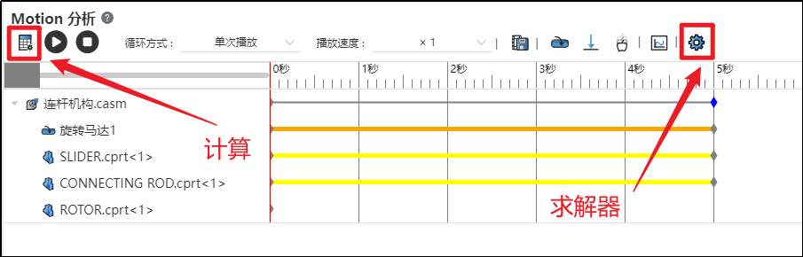 点击右上角运动算例属性,选择求解器。再点击左上角计算。