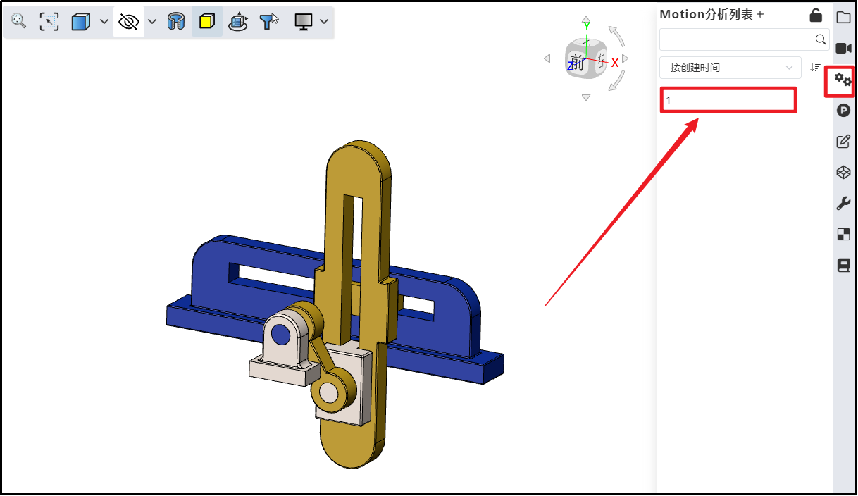 - 点击右侧边栏Motion分析列表,即可以找到保存的运动算例。