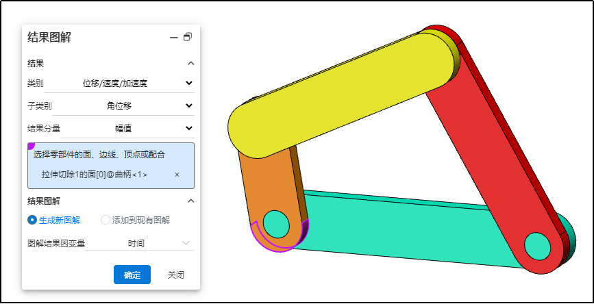 注: 目前仅支持线性位移、角位移、马达力、马达力矩等结果图解,后续逐步支持所有结果图解。