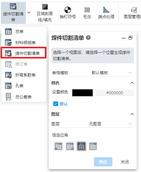 用于生成焊件切割清单,并可对创建的切割清单进行自定义设置,支持增减列、修改列属性等操作。