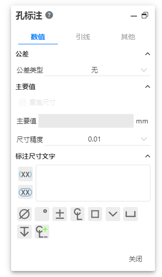 其他设置同智能尺寸,常用符号功能在智能尺寸中也可用。