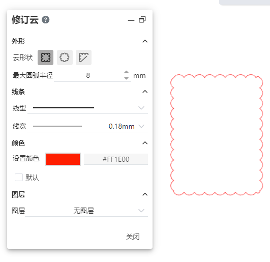 手动选择已经生成的修订云,拖拽修订云路径的控制点或修改对话框选项的参数。
