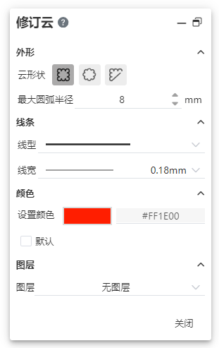 - 云形状:用于选择修订云的形状;从左到右依次为“矩形、椭圆、多边形。