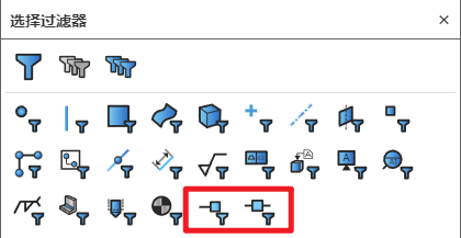 当软件中存在管路模块时,选择过滤器中增加连接点、线路点筛选项,启动筛选后,只能选对应元素。