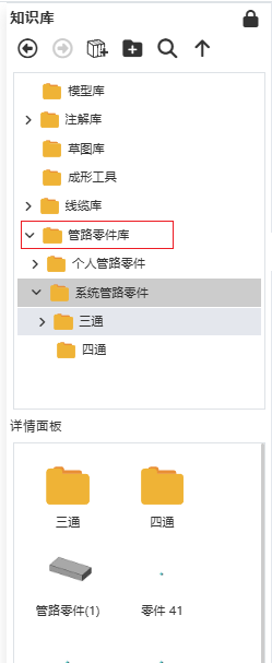 知识库中的管路零件库文件夹可以用来储存管路零件。