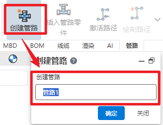在弹出的对话框中,输入需要创建的管路子装配体名称,点击确定。