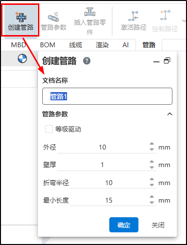 在装配体中生成管路子装配体。