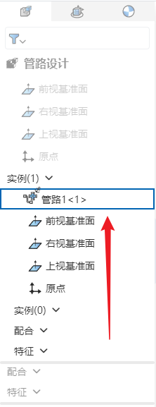 在左侧特征树里,可以看见管路实例有蓝色高亮边框,则代表管路已经激活,可以按照用户需求设计管路装配。