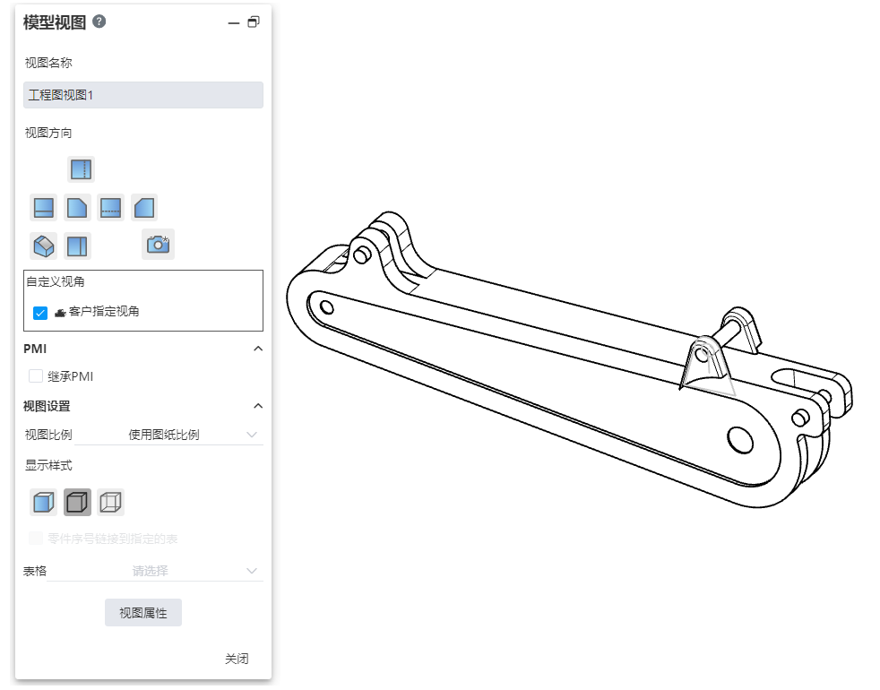 模型视图可根据预定义的视向和比例生成单一视图。将模型视图插入到工程图中的步骤: