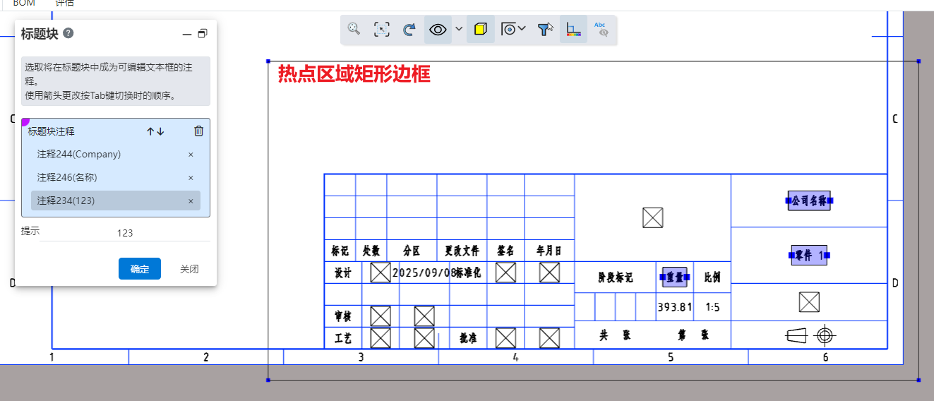 支持设置标题块注释,以实现无需进入图纸格式,即可快速编辑标题栏文字或编辑图纸格式中注释的效果。