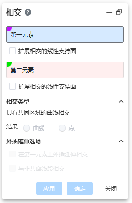 第一/第二元素:分别为相交的两个元素,支持线、面。