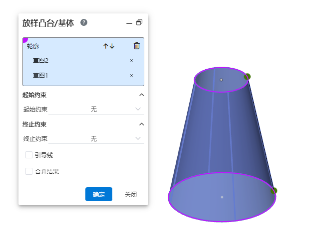 在两个或多个轮廓之间进行过渡生成实体特征。