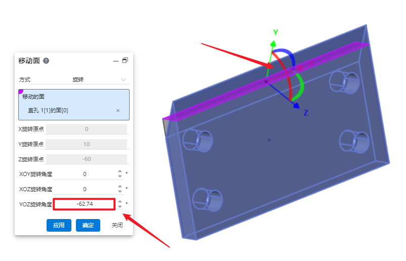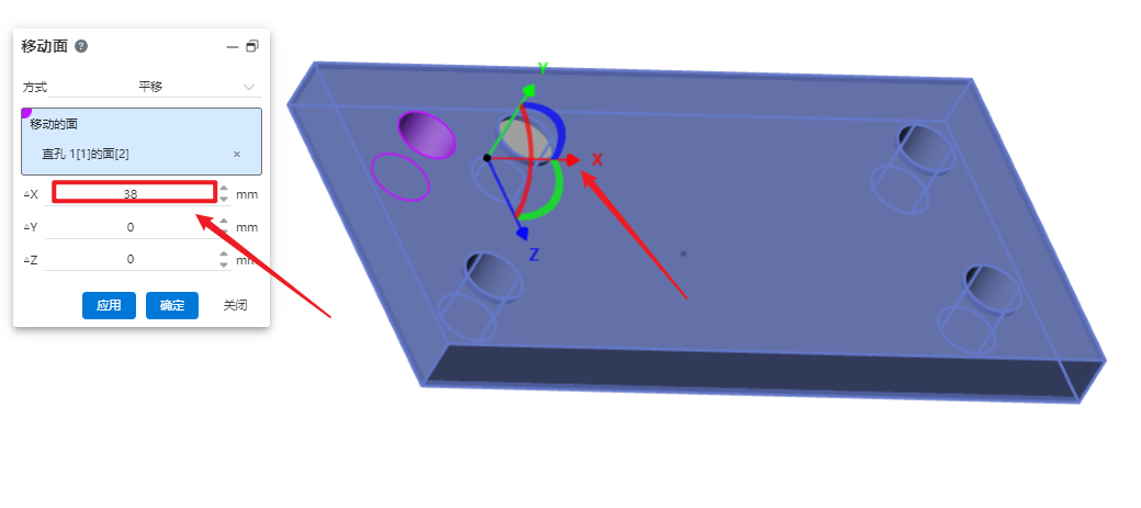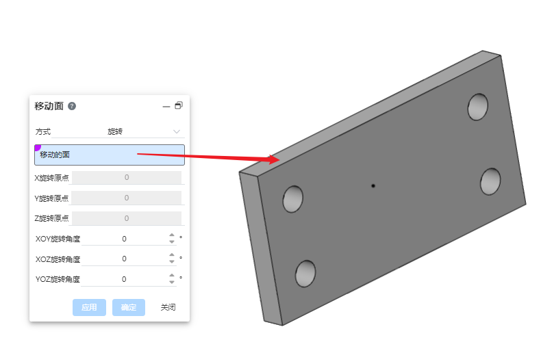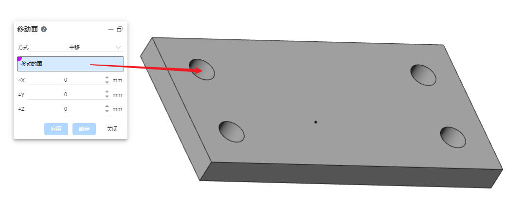 以实体表面作为载体,通过对实体表面的移动和旋转,实现对特征的快速修改。