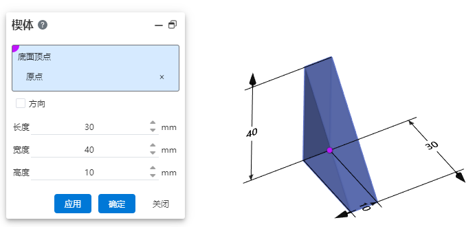 分别输入长度、宽度、高度值,完成楔体的创建。